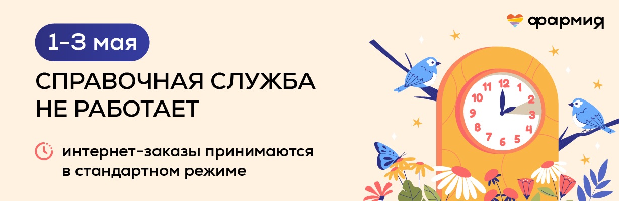 Получить консультацию квалифицированного специалиста по интересующему Вас препарату, правилам приема, противопоказаниям, ассортименту, наличию в аптеках и ценах Вы можете, обратившись по телефону 8 (800) 775-55-29 (пн–пт 09:00–18:00). Мы всегда заботимся о наших клиентах и стараемся сделать так, чтобы Вы остались довольны!