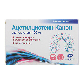 | Ацетилцистеин Канон | Гранулы д/пригот. р-ра д/приема внутрь 100 мг/3 г: пакеты 20 шт. рег. №: ЛП-003938 от 07.11.16 *- Действующее* | |