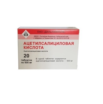 | ацетилсалициловая кислота | 500 мг |