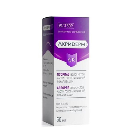 | Безрецептурный препарат | Акридерм СК | Раствор для наружного применения 0.5 мг+20 мг/1 г: фл. 50 мл или 100 мл рег. №: ЛП-(001743)-(РГ-RU) от 27.01.23 *- Действующее* Дата переоформления: 26.04.23 |