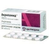Акрипамид - антигипертензивный препарат, диуретик, обладает вазодилатирующей активностью. По фармакологическим свойствам близок к тиазидным диуретикам – вызывает нарушение реабсорбции ионов натрия в кортикальном сегменте петли Генле. Акрипамид увеличивает выведение с мочой ионов натрия и хлора и в меньшей степени ионов калия и магния. Обладая способностью селективно блокировать медленные кальциевые каналы, повышает эластичность стенок артерий и снижает ОПСС. Способствует уменьшению гипертрофии левого желудочка сердца. Акрипамид не влияет на содержание липидов в плазме (ТГ, ЛПВП и ЛПНП ) и на углеводный обмен (в т.ч. у больных с сопутствующим сахарным диабетом).