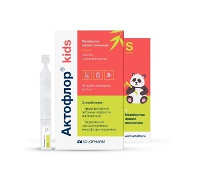 АКТОФЛОР® KIDS - метабиотик представляющий собой комплекс витамина В6, аминокислот, янтарной, L - молочной и других органических кислот - аналогов метаболитов пробиотических бактерий. Содержание биологически активных компонентов в одной дозе: Витамин В6 (в виде пиридоксина гидрохлорида), мг 0,8 Янтарная кислота, мг 32,4 L-молочная кислота, мг 49,4 Синергическое действие компонентов, входящих в состав комплекса, повышает физиологическую активность и стимулирует рост собственной полезной микрофлоры кишечника человека, в том числе и детей, увеличивает её активность против патогенных микроорганизмов. Микробиом человека, особенно микробиом кишечника, - это постоянно действующая сложноорганизованная экосистема. Нормальный кишечный микробиом выполняет функции биологического защитного барьера, стимулятора иммунной системы организма, обеспечивая его сопротивление негативным факторам и адаптацию к окружающей среде. Одной из важнейших функций микробиома кишечника является производство биологически активных метаболитов (ферментов, лактатов, аминокислот, жирных кислот, витаминов) действующих как сигнальные молекулы, оказывающих прямое влияние на обмен веществ, функции кишечника, печени, головного мозга, а также на процессы в жировой и мышечной ткани. Нормальное функционирование микробиома кишечника способствует росту и развитию детского организма. Качественный и количественный состав кишечного микробиома может изменяться при ряде заболеваний, в том числе сопровождающихся диареей, при лечении антибиотиками, нарушениях питания (несбалансированные диеты, пищевые дефициты). Дисбиотические сдвиги могут способствовать появлению пищеварительных расстройств, мальабсорбции, нарушениям минерального, белкового и жирового обмена, в том числе за счет изменений всасывания и усвоения ряда незаменимых нутриентов (кальций, витамин D), потерь белка и незаменимых аминокислот. Поддержание оптимального состава и функциональной активности кишечного микробиома особенно важно в период роста и развития детского организма и при стрессовых воздействиях на организм человека.