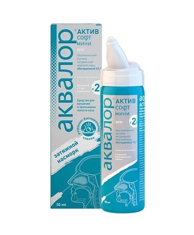 Аквалор «Актив Софт Мини» — изотонический раствор морской воды, предназначенный для тщательного промывания полости носа, профилактики и лечения острого и хронического насморка у взрослых и детей с 2 лет. Средство обладает увлажняющим, иммуностимулирующим действием, которое обусловлено свойствами натуральной морской воды. Ее забор производится в экологически чистых районах Атлантического океана в территориальных водах Франции и Швеции. Вода проходит специальную очистку и фильтрацию, благодаря чему в ней сохраняются полезные микроэлементы и минералы.