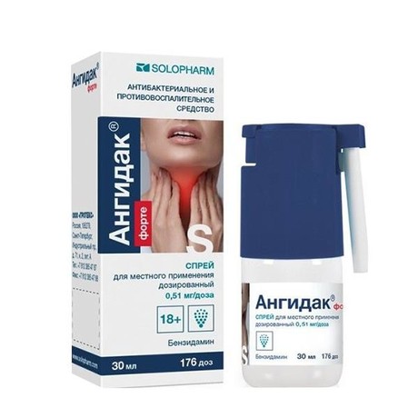 | Ангидак® форте | Спрей д/местн. прим. дозированный 0.51 мг/1 доза: фл. 30 мл (176 доз) рег. №: ЛП-(000979)-(РГ-RU) от 05.07.22 *- Действующее* Предыдущий рег. №: ЛП-005566 |
