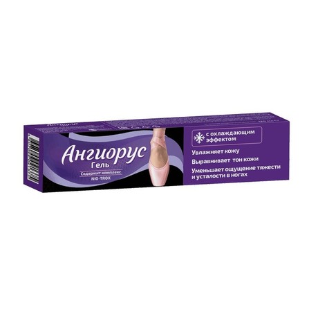 Ангиорус Гель для ног - содержит активный комплекс NIO-TROX 1% способствует снятию ощущения тяжести и усталости в ногах. Благодаря уникальному комплексу активных компонентов, Ангиорус Гель обладает следующими эффектами: - облегчает чувство тяжести и усталости в ногах; - восстанавливает ощущение легкости и комфорта в ногах; - смягчает и защищает кожу ног; - придаёт сияние и увлажняет кожу ног. Преимущества: - Охлаждает. - Легко впитывается. - Не липнет. - Без красителей. - С шиммером.
