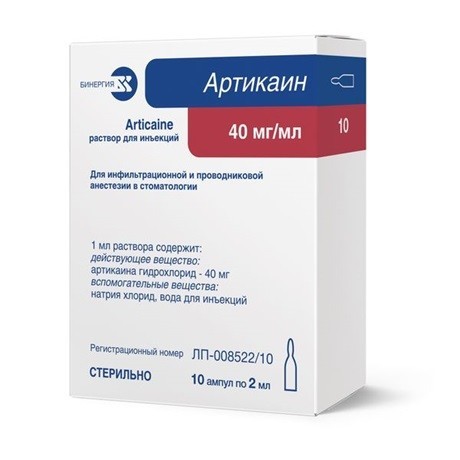 Артикаин является местноанестезирующим средством амидного типа, применяемым для инфильтрационной и проводниковой анестезии в стоматологии.