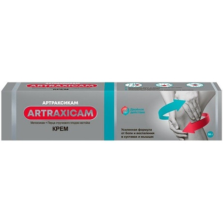 Артраксикам оказывает противовоспалительное, анальгезирующее, противоотечное действие. Может вызывать легкую локальную гиперемию кожи, не оказывая при этом выраженного раздражающего действия на кожные покровы.