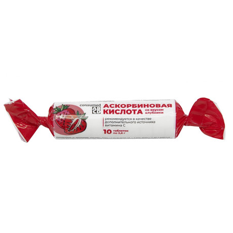 Аскорбиновая кислота 25мг, сахар, глюкоза, антислеживающий агент: кальция стеарат; картофельный крахмал