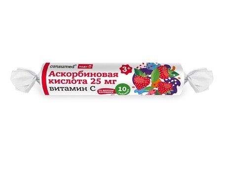 Cахар, глюкоза, аскорбиновая кислота (витамин С), антислеживающий агент кальциевая соль стеариновой кислоты, натуральный ароматизатор "Клубника"