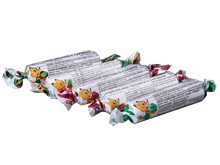 Вспомогательные вещества: крахмал картофельный, лимонная кислота, магния стеарат, ароматизатор идентичный натуральному (апельсин 585, 590; вишня 95, 061; груша 95, 573 (дюшес 511); лимон 517; мята 614; черная смородина 522, 554. Пищевой краситель: (аннато Е 160 b), кармин (Е 120); куркумин (Е 100)).