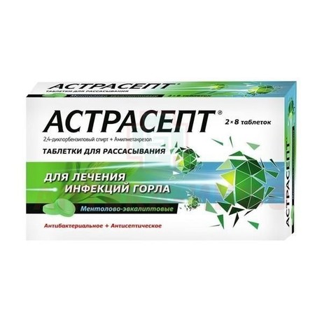 | Астрасепт® | Таб. д/рассасывания (ментолово-эвкалиптовые) 1.2 мг+0.6 мг: 16 шт. рег. №: П N013402/01 от 18.02.08 *- Бессрочно* |