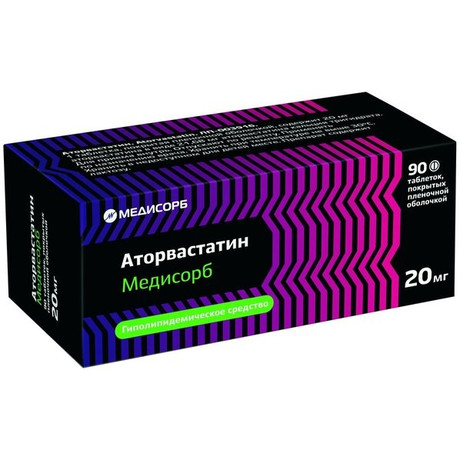 Аторвастатин Медисорб таб. п/пл. об. 20мг №90