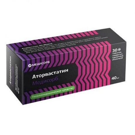 Аторвастатин Медисорб таб. п/пл. об. 40мг №30