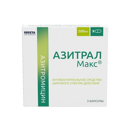 Азитромицин быстро абсорбируется из ЖКТ, что обусловлено его устойчивостью в кислой среде и липофильностью. После приема Азитрала внутрь в дозе 500 мг Cmax азитромицина в плазме крови достигается через 2.5-2.96 ч и составляет 0.4 мг/л. Биодоступность составляет 37%.