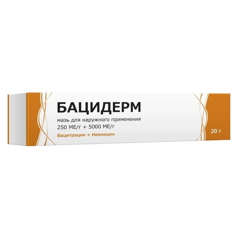 | Бацидерм | Мазь д/наружн. прим. 250 МЕ+5000 МЕ/г: тубы 10 г, 15 г, 20 г, 25 г, 30 г, 35 г, 40 г, 50 г, 60 г, 70 г, 80 г или 100 г рег. №: ЛП-006500 от 09.10.20 *- Действующее* Дата перерегистрации: 08.06.22 |