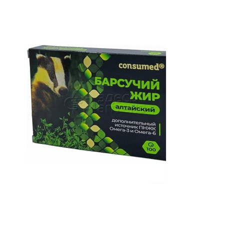 Жир барсука, оболочка капсулы: желатин, глицерин - влагоудерживающий агент, лимонная кислота - регулятор кислотности.