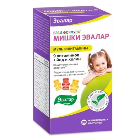 БЭБИ ФОРМУЛА МИШКИ МУЛЬТИВИТАМИНЫ - витаминно-минеральный комплекс в виде жевательных мармеладных пастилок обладает общеукрепляющим действием и способствует: улучшению памяти и внимания, интеллектуальному развитию ребенка, поддержке организма ребенка в период адаптации в детском саду, школе, обогащению организма витаминами и минералами.