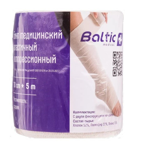 Хлопок 52%, полиэфир 33%, латекс 15%, в комплекте имеются соединительные крючки для закрепления повязки.