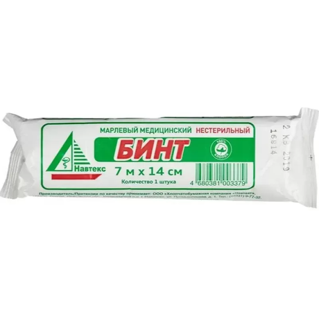 Бинт марлевый стерильный 7м х 14см. Бинт может применяться в клинических, поликлинических, полевых условиях при оказании первой медицинской помощи и в домашних условиях.