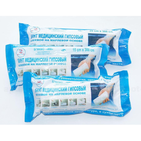Для изготовления бинтов медицинских гипсовых клеевых на марлевой основе БГМКМО - "ММ" используются высококачественные сорта гипса Тибета, с содержанием CaSO4-2H2O более 98%. Для улучшения пластичности и неосыпаемости бинтов также используются пластификаторы ПВА и ПВС. В производстве используется высокотехнологическое оборудование, позволяющее получить бинты с разным временем схватывания, необходимых в хирургии для различных типов работ. Получаемые гипсовые бинты хорошо пропускают рентгеновское излучение и позволяют получать снимки высокого качества. Минимальные количества посторонних примесей в составе гипса исключают аллергические реакции кожи.