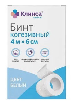 Клинса Бинт когезивный самофиксирующийся 4м х 6см белый, 1 шт.