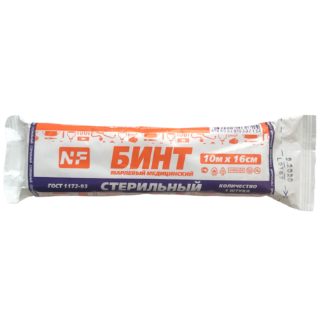 Бренд НЬЮФАРМ - производитель и поставщик высококачественных изделий медицинского назначения с многолетним профессиональным стажем на рынке изделий медицинского назначения. БИНТ МАРЛЕВЫЙ МЕДИЦИНСКИЙ СТЕРИЛЬНЫЙ 10МХ16СМ ИНД/УП//НЬЮФАРМ/ - предназначен для фиксации, наложения, изготовления операционно-перевязочных средств. Внешний вид и свойства: бинт белого цвета, без цветных и жирных пятен, с обрезанной кромкой, без швов. Поверхностная плотность используемой марли - 36 г/м2±5%
