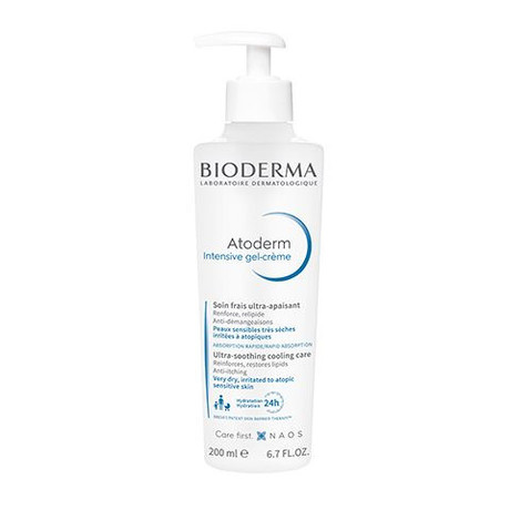 Bioderma Atoderm Intensive gel-creme (Биодерма Атодерм Интенсив Гель-крем) для сухой, раздраженной атопичной кожи. Биодерма Атодерм Гель-крем Интенсив – это первое успокаивающее средство для ежедневного ухода за кожей, адаптированное к потребностям пациентов с атопичной кожей в теплое время года, а также в условиях влажного или тропического климата. Он обладает революционной текстурой, оставляя мгновенное ощущение свежести на коже. Благодаря легкой, нежирной и нелипкой текстуре быстро впитывается и не оставляет следов на одежде. Клинические исследования в течение 21 дня показали: у 76% пациентов отсутствуют обострения,100% пациентов отмечают, что средство мгновенно успокаивает зуд и этот эффект длится 24 часа,95% пациентов ощущают, что их кожа долго защищена. Активные компоненты: витамин РР стимулирует синтез липидов и укрепляет кожный барьер; Патент Skin Barrier Therapy защищает кожу от пролиферации бактерий, провоцирующих раздражение и сухость. без отдушек