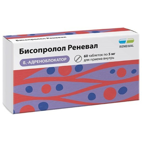 Бисопролол Реневал таб. п/пл. об. 5мг №60 (15х4)