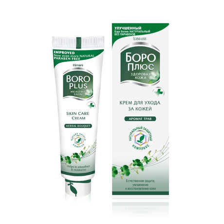 Бренд BORO PLUS - это ведущий бренд индийской компании «Эмами Лимитед» (Emami) в категории средств по уходу за кожей. Линия SKIN CARE - специально для ухода за здоровой и проблемной кожей лица и тела. HIMANI BORO PLUS БОРО ПЛЮС КРЕМ ДЛЯ УХОДА ЗА КОЖЕЙ АРОМАТ ТРАВ (ЗЕЛЕНЫЙ) - это средство с инновационным комплексом трав, известных своими восстанавливающими и успокаивающими свойствами. Внешний вид и свойства: кремовая текстура белого цвета с запахом трав Боро плюс крем по уходу за кожей - это уникальный крем, который эффективно защищает кожу от различных проблем и идеально подходит для всей семьи. БОРОПЛЮС - это естественная защита и уход за вашей кожей каждый день. Боро Плюс крем с ароматом трав - антисептический, успокаивающий, увлажняющий