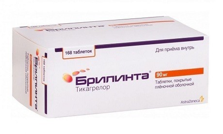 Брилинта® содержит тикагрелор, представитель химического класса циклопентилтриазолопиримидинов, который является селективным и обратимым антагонистом Р2Y12-рецепторов прямого действия и предотвращает АДФ-опосредованную Р2Y12-зависимую активацию и агрегацию тромбоцитов. Тикагрелор не предотвращает связывание АДФ, но его взаимодействие с Р2Y12-рецептором тромбоцитов предотвращает АДФ-индуцированную трансдукцию сигналов. Т.к. тромбоциты участвуют в инициировании и/или развитии тромботических осложнений атеросклероза, было показано, что ингибирование функции тромбоцитов уменьшает риск развития сердечно-сосудистых явлений, таких как летальный исход, инфаркт миокарда или инсульт.