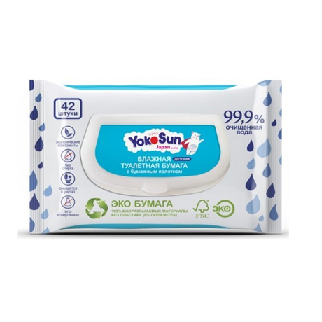 Бренд YokoSun YOKOSUN влажная туалетная бумага детская Внешний вид: Белые салфетки, без отдушек Специальные особенности: Без ароматизаторов, без консервантов, без красителей, гипоаллергенно Детская влажная туалетная бумага YokoSun - супер-мягкая влажная туалетная бумага для самых маленьких и детей всех возрастов. Благодаря своей текстуре заметно мягче обычной туалетной бумаги и экономнее расходуется. Она бережно очищает нежную кожу малыша, не вызывая раздражения и покраснений и даря исключительную чистоту и комфорт. Растворяется в воде и разлагается в природных условиях. Можно смывать в унитаз после использования. Имеют сертификат экологического соответствия "Эко". • Подходит с первых дней жизни • Ультрамягкая • Не содержит спирта, парабенов, красителей и силиконов • Без запаха • Гипоаллергенна • pH нейтральна для кожи • Биоразлагаемая • Можно смывать в унитаз Может использоваться как самостоятельно, так и в дополнение к обычной туалетной бумаге. Делает гигиену в любых условиях значительно комфортнее. Удобна в использовании дома, в поликлинике, на прогулке и в путешествиях.