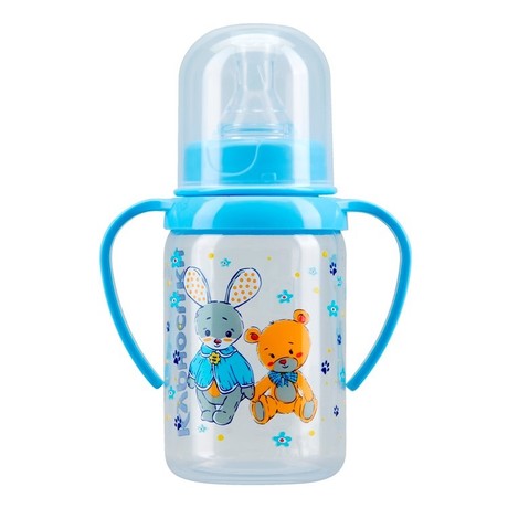 Бутылочка с ручками с силиконовой соской молочной, 125 мл - 1 шт в уп.
