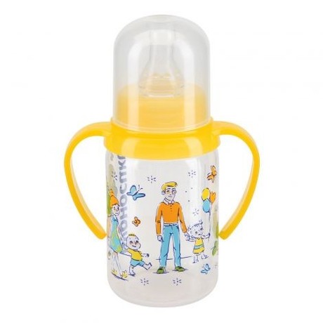 Полипропиленовая бутылочка Курносики с силиконовой соской имеет классическую форму и понятную мерную шкалу, соответствующую объему. Бутылочку с ручками удобно держать малышу для самостоятельного кормления. Удобна в использовании и уходе. В комплект входят круглая силиконовая соска и герметичный колпачок, предохраняющий содержимое от проливания.