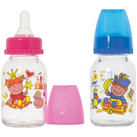 Бутылочка Курносики "Пират и Принцесса" с силиконовой соской с 0 мес. 125 мл. (стекло) имеет классическую форму и понятную мерную шкалу, соответствующую объему. Бутылочка сделана из специального медицинского стекла, не трескается от кипятка и выдерживают температуру в 200°С при стерилизации. Удобна в использовании и уходе. Бутылочки выполнены в голубом и розовом цвете с изображением сказочных героев: Пирата и Принцессы.