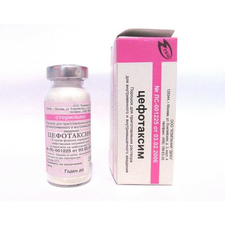 | Цефотаксим | Порошок д/пригот. р-ра д/в/в и в/м введения 1 г: фл. 1 или 50 шт. рег. №: ЛС-001225 от 30.01.12 *- Бессрочно* |