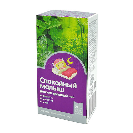 Предлагаем купить Спокойный малыш детский травяной чай, 20 фильтр-пакетов с помощью онлайн-заявки — закажите препарат в ближайшую аптеку из числа наших партнеров города Москва, чтобы выкупить его в рабочее время аптеки.