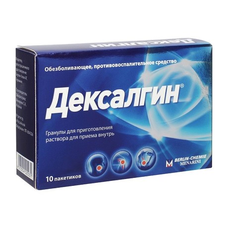 | Дексалгин® | Гранулы д/пригот. р-ра д/приема внутрь 25 мг: пак. 2.5 г 4, 10, 20 или 30 шт. рег. №: ЛП-(000671)-(РГ-RU) от 06.04.22 *- Бессрочно* Предыдущий рег. №: ЛП-004326 |