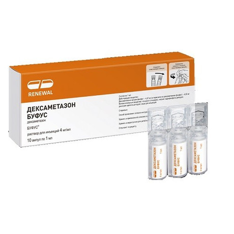 | Дексаметазон буфус | Р-р д/инъекц. 4 мг/мл: 1 мл или 2 мл амп. 5, 10, 20, 25 или 30 шт. рег. №: ЛП-007514 от 19.10.21 *- Действующее* |