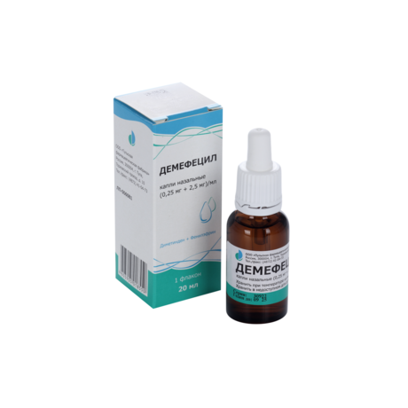 Классификация частоты развития побочных эффектов согласно рекомендациям Всемирной организации здравоохранения (ВОЗ): Очень часто > 1/10; Часто от > 1/100 до <1/10; Нечасто от > 1/1000 до <1/100; Редко от > 1/10000 до <1/1000; Очень редко <1/10000, включая отдельные сообщения; Со стороны дыхательной системы: Редко: дискомфорт в области носа, сухость в носу, носовое кровотечение. Местные реакции: Редко: жжение в области нанесения. Если любые из указанных в инструкции побочных эффектов усугубляются, или Вы заметили любые другие побочные эффекты, не указанные в инструкции, сообщите об этом врачу. Передозировка Передозировка препаратом ДЕМЕФЕЦИЛ может вызывать симпатомиметические эффекты, например, учащенное сердцебиение, преждевременное сокращение желудочков сердца, головную боль в области затылка, тремор, чувство усталости, повышение артериального давления, эмоциональное возбуждение, бессонницу, бледность кожных покровов. Препарат также может вызывать легкий седативный эффект, головокружение, чувство боли в желудке, тошноту, рвоту. Лечение: применение активированного угля, слабительных у детей младшего возраста; у взрослых и детей старше 6 лет - прием большого количества жидкости. Специфического антидота нет. Повышенное артериальное давление, вызванное фенилэфрином, можно устранить при помощи применения альфа-адреноблокаторов. Лекарственное взаимодействие Фенилэфрин (как и другие сосудосуживающие средства) противопоказан больным, получающим ингибиторы МАО в данное время или получавшим их в течение 2 предыдущих недель. Не следует назначать препарат одновременно с три- и тетрациклическими антидепрессантами, бета-адреноблокаторами. Особые указания ДЕМЕФЕЦИЛ не следует применять непрерывно на протяжении более 7 дней без консультации с врачом. Длительное или чрезмерное применение препарата может вызвать тахифилаксию и эффект «рикошета», связанный с повторным развитием заложенности носа (медикаментозный ринит), привести к развитию системного сосудосуживающего действия. Не следует превышать рекомендуемые дозы препарата ДЕМЕФЕЦИЛ! В противном случае возможно развитие проявлений системного действия препарата, особенно у детей и пациентов пожилого возраста. У детей в возрасте младше 6 лет применяют только капли в нос.