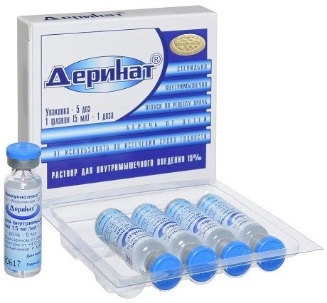 Для уменьшения болезненности Деринат вводят внутримышечно медленно, в течение 1-2 мин. Непосредственно перед введением рекомендуется согреть флакон в руке до температуры тела.