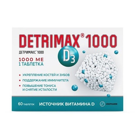 | БАД | Детримакс® Витамин Д3 | Таблетки, покрытые оболочкой, 25 мкг (1000 МЕ): 24, 30, 48, 60, 90 или 120 шт. рег. №: RU.77.99.11.003.Е.003908.09.17 от 05.09.17 *- Действующее* |