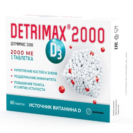 Детримакс® 2000 содержит витамин D3 (колекальциферол) - жизненно важный жирорастворимый витамин, необходимый для обеспечения деятельности практически всех органов и систем человеческого организма.
