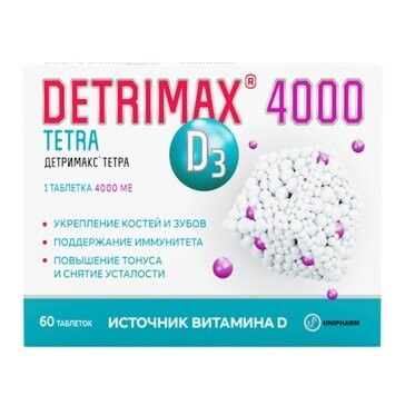 Детримакс® Тетра содержит витамин D3 (холекальциферол) - жизненно важный жирорастворимый витамин, необходимый для обеспечения деятельности практически всех органов и систем человеческого организма.