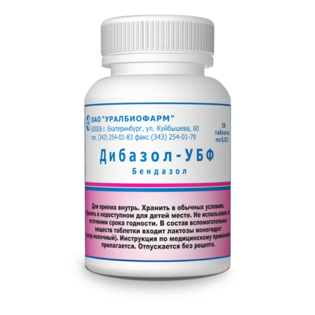 | Дибазол-УБФ | Таб. 20 мг: 10, 20, 25, 30, 40, 50 или 60 шт. рег. №: Р N002128/01 от 05.12.08 *- Бессрочно* |