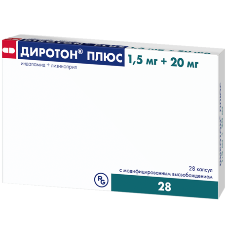 Диротон® Плюс представляет собой комбинированный препарат с фиксированными дозами лизиноприла и индапамида.
