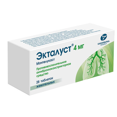 | Экталуст® | Таб. жевательные 4 мг: 7, 14, 20, 21, 28 или 30 шт. рег. №: ЛП-002248 от 25.09.13 *- Действующее* Дата перерегистрации: 26.09.18 | |