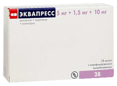 Эквапресс® - фиксированная комбинация антигипертензивных компонентов амлодипина, индапамида и лизиноприла, которые обладают взаимодополняющими механизмами действия, позволяющими контролировать АД, а также синергично оказывают кардиопротекторное действие.