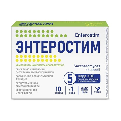 «Энтеростим®» / «Enterostim» – это безопасный пробиотик для улучшения состояния при диарее благодаря полезным микроорганизмам Saccharomyces boulardii.
