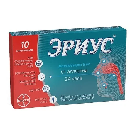 Действие препарата Эриус® начинается в течение 30 мин после приема внутрь и продолжается в течение 24 ч.