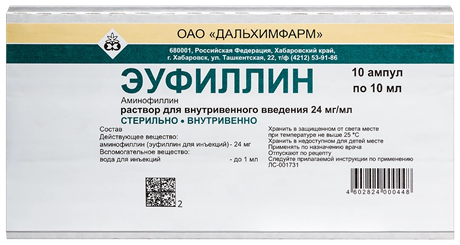 | Эуфиллин | Раствор для внутривенного введения 240 мг/10 мл: амп. 5 и 10 шт. рег. №: ЛСР-000883/09 от 09.02.09 *- Бессрочно* |
